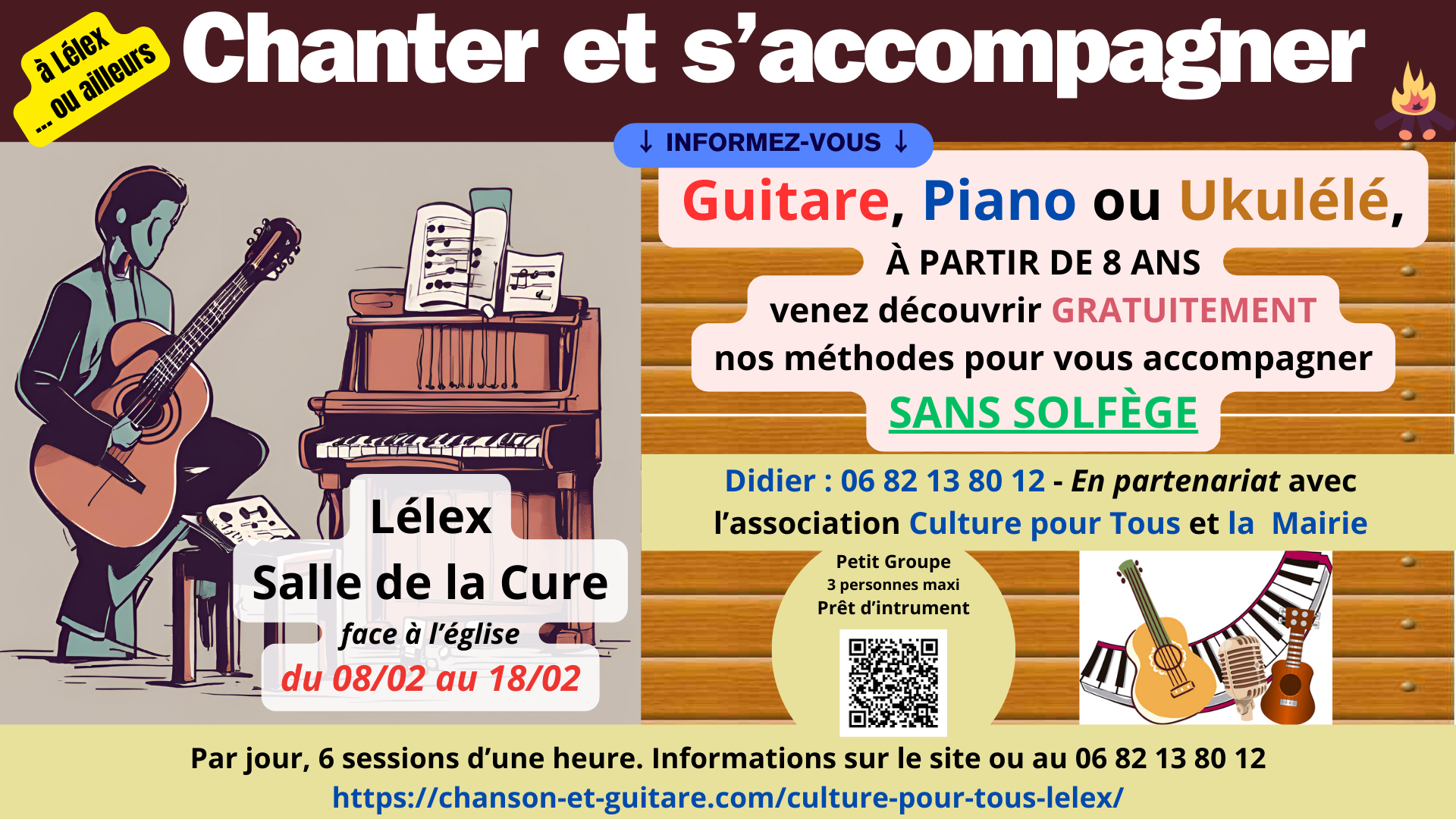 Didier, en partenariat avec Culture pour Tous et la mairie de Lélex, propose des méthodes, sans solfège, pour accompagner votre chant avec divers instruments.