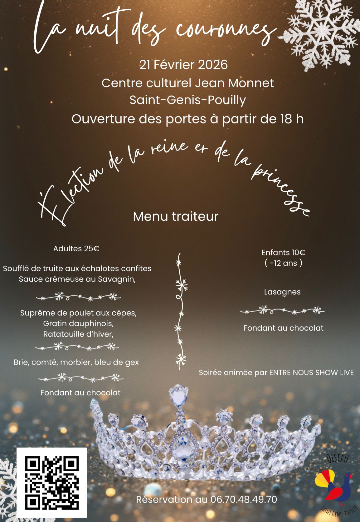 L'association des Chevaliers de l'Oiseau organise sa traditionnelle soirée d'Election de la Reine et de la Princesse de l'Oiseau de Saint-Genis-Pouilly.
