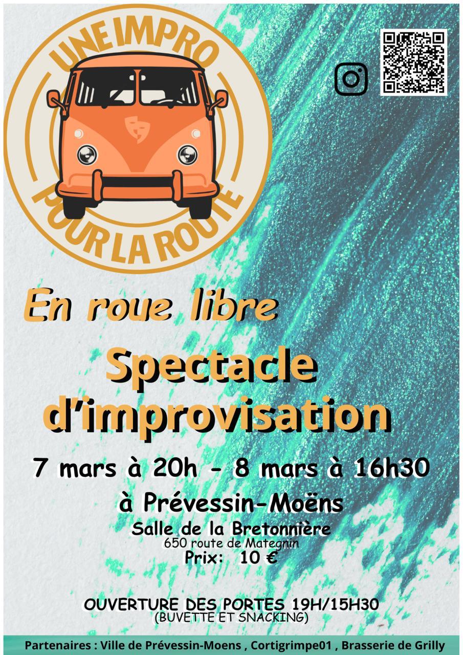 Dans “En roue libre”, la compagnie amateur Une impro pour la route vous embarque pour une soirée où les histoires naissent sous vos yeux. En deux parties, les personnages se croisent, évoluent, se perdent et se retrouvent, portés par l’écoute, le jeu collectif et l’inattendu.