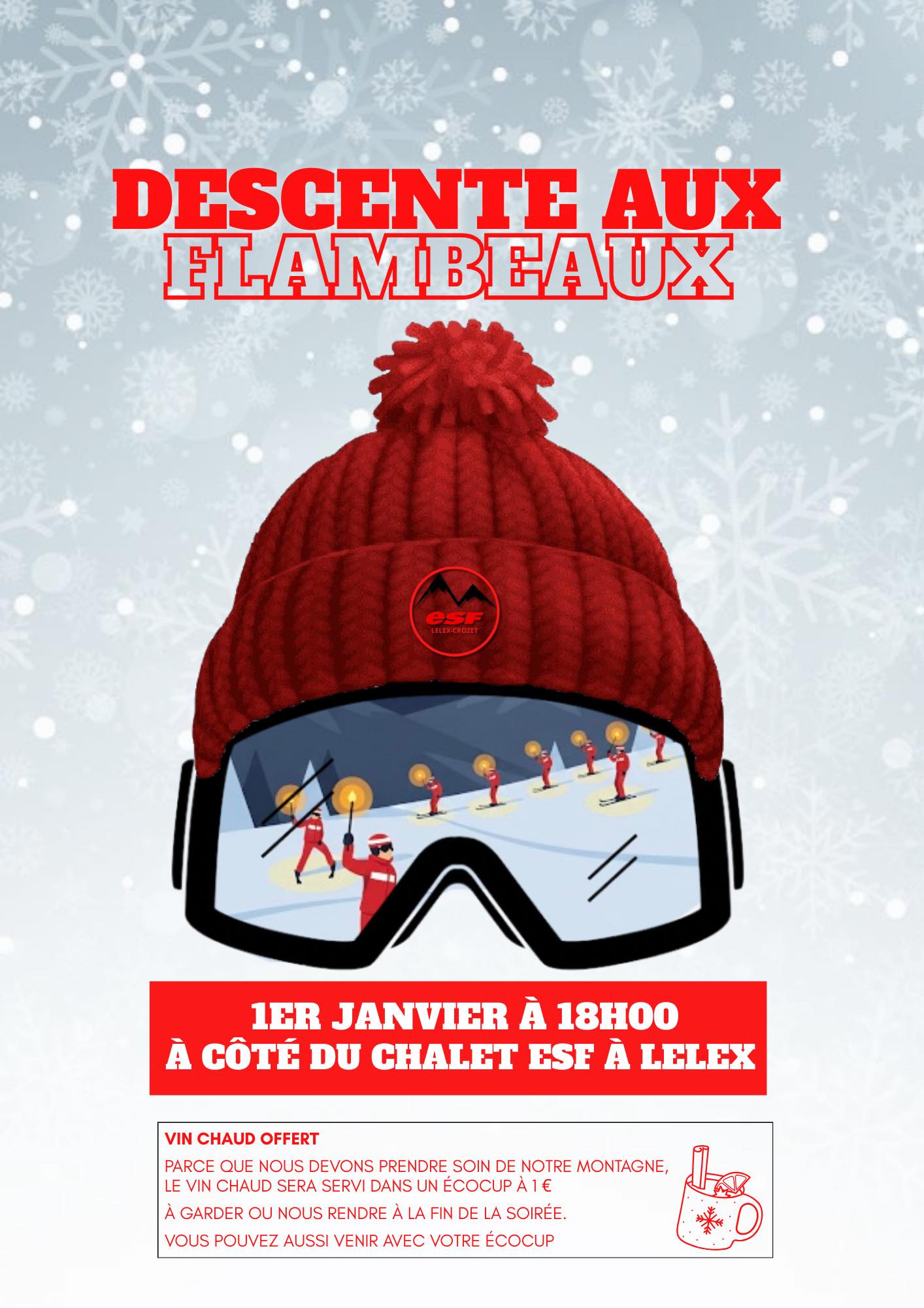 Die von Fackeln begleiteten Skilehrer erhellen die Nacht und fahren die schwarze Piste von Lélex hinunter. Ein Spektakel, das seit Jahren Groß und Klein begeistert, die bei dieser Gelegenheit auch die Maskottchen kennenlernen: Piou-Piou, Garolou, Blanchot und Marmotte. Getränke werden angeboten.